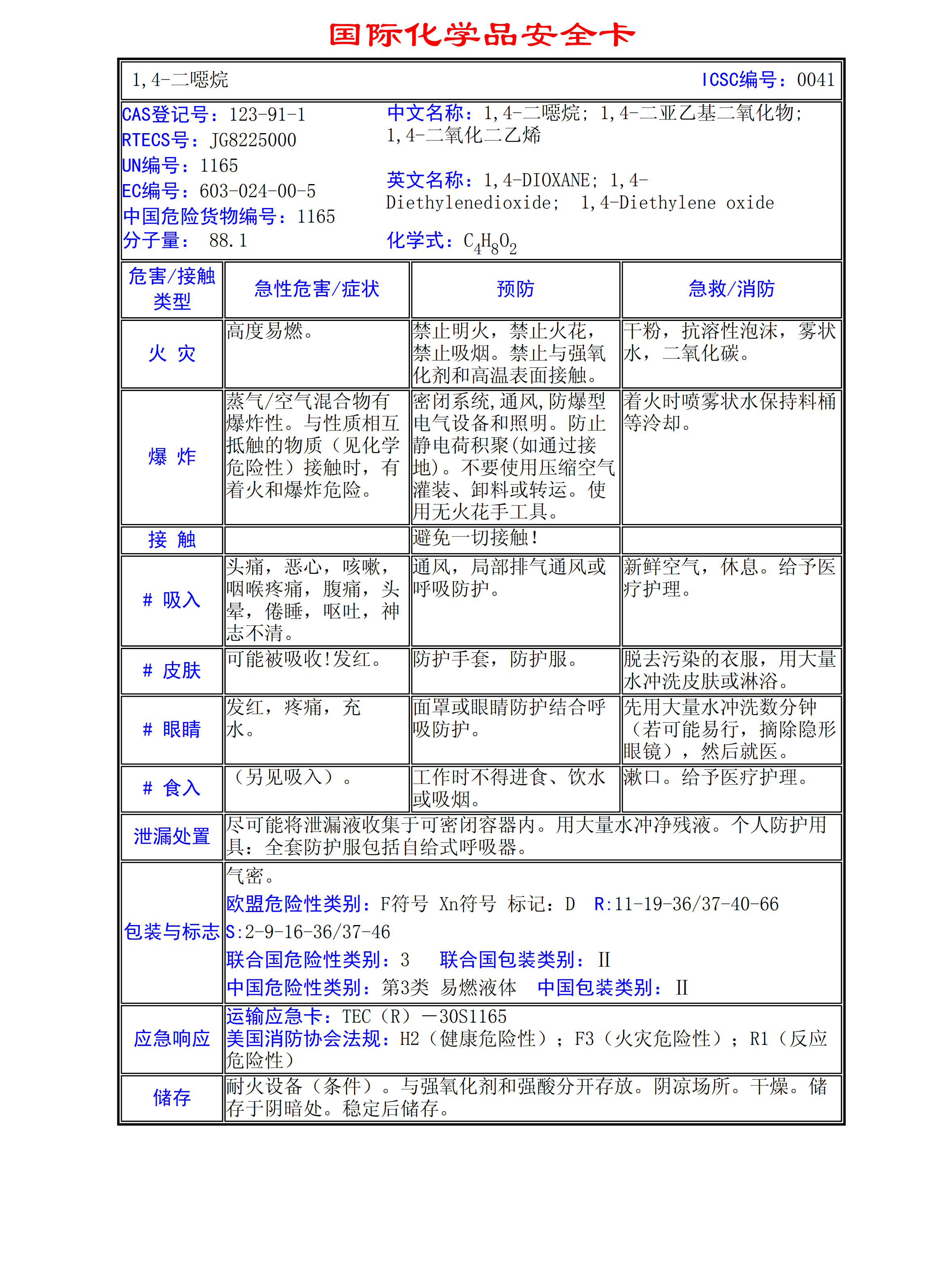1,4-二噁烷MSDS